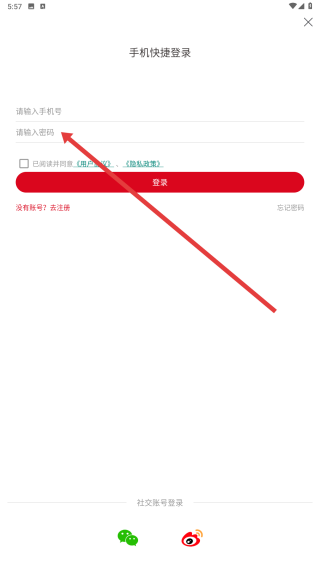 1、打开北青相关APP,在登录页面可选择多种登录方式,如手机快捷登录,输入手机号和密码,完成登录。