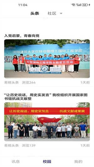 3、再接着点击下方的“校园”,我们可以看到最新的校园动态。