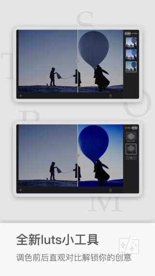 提供多种官方LUTS(持续更新中),让你的照片更富色彩!也可导入自设cube格式的LUTS,随心掌握独特风格。