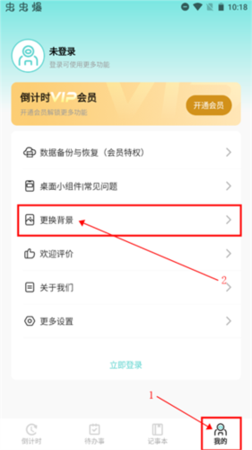 进入倒计时软件,点击“我的”页面,点击“更换背景”