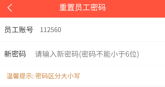 6、你也能重置员工的密码,在下方第二个【重置密码】,输入新密码就可以了,完成之后记得及时告诉员工。