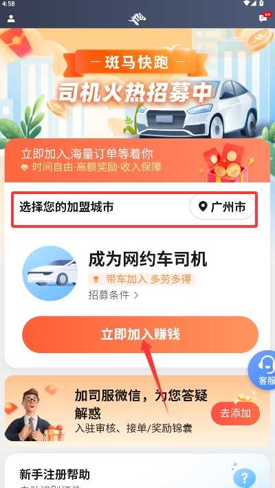 3、根据运营需求选择目标加盟城市,确认后点击立即加入赚钱开启注册流程。