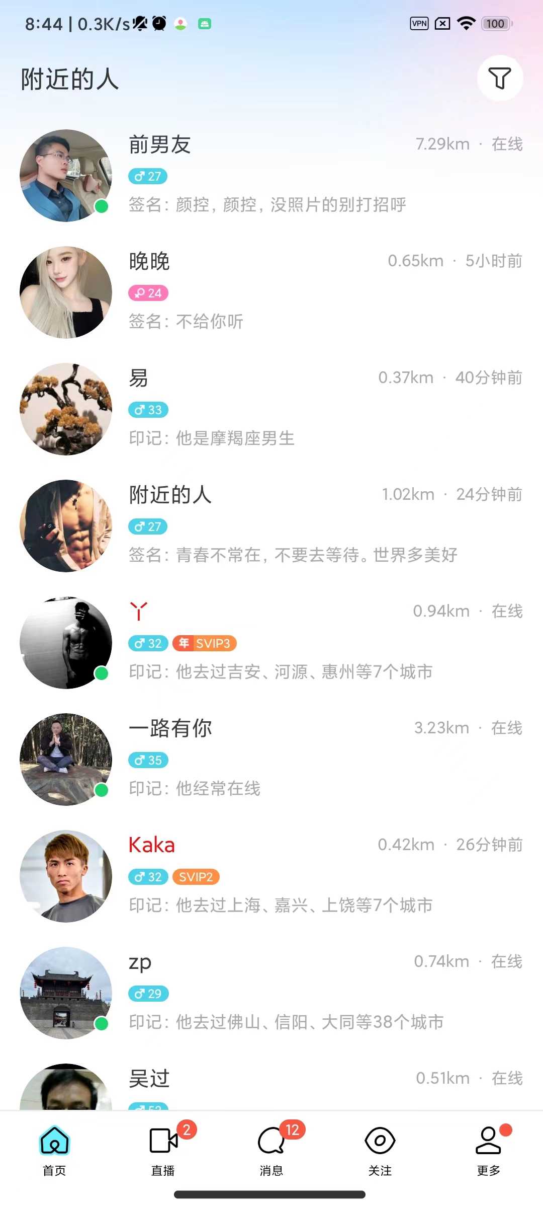 1、打开软件后进入首页,能够看到很多附近的人信息。