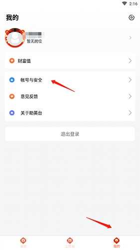 1、打开软件,点击底端的“我的”选项,然后点击“帐号与安全”选项。