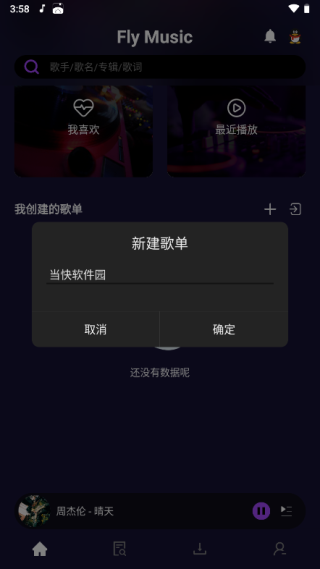 1、进入FlyMusic App,下划到歌单,点击图示的“+”;