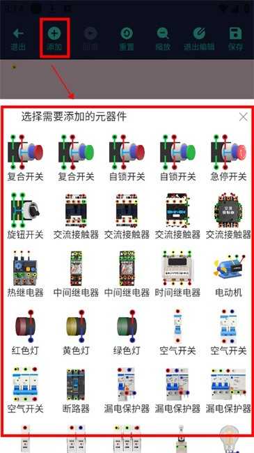4.点击上方的【+添加】,可自行选择需要添加的元器件
