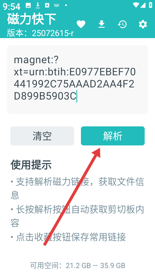 1、支持解析磁力链接,获取文件信息。