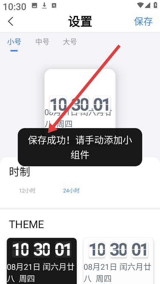 5、保存完成后,界面会弹出 “保存成功” 的提示,此时桌面组件已设置完成,返回桌面即可查看效果。