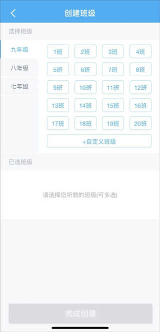 选择所教的年度和班级,点击添加班级。若找不到班级,可自定义班级号进行添加。添加后点击“创建班级”,即添加成功