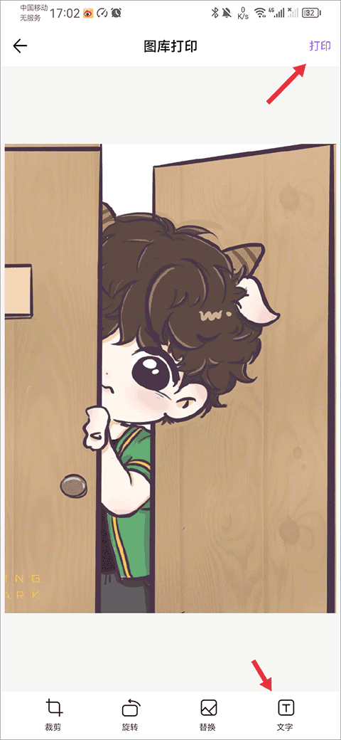 4、你还可以对需要打印的图片添加文字,再点击右上角打印功能