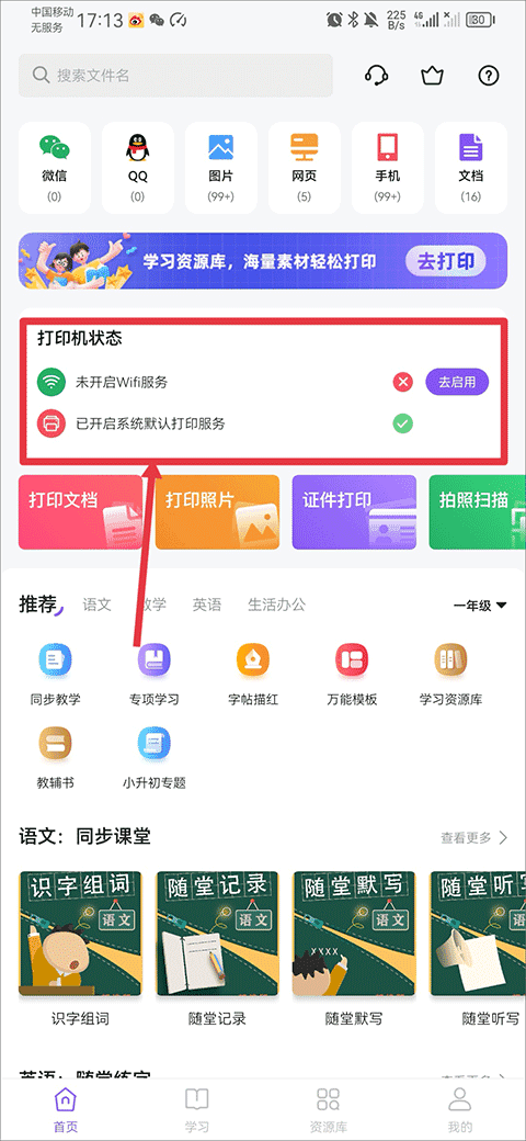 2、新增学习资料打印功能