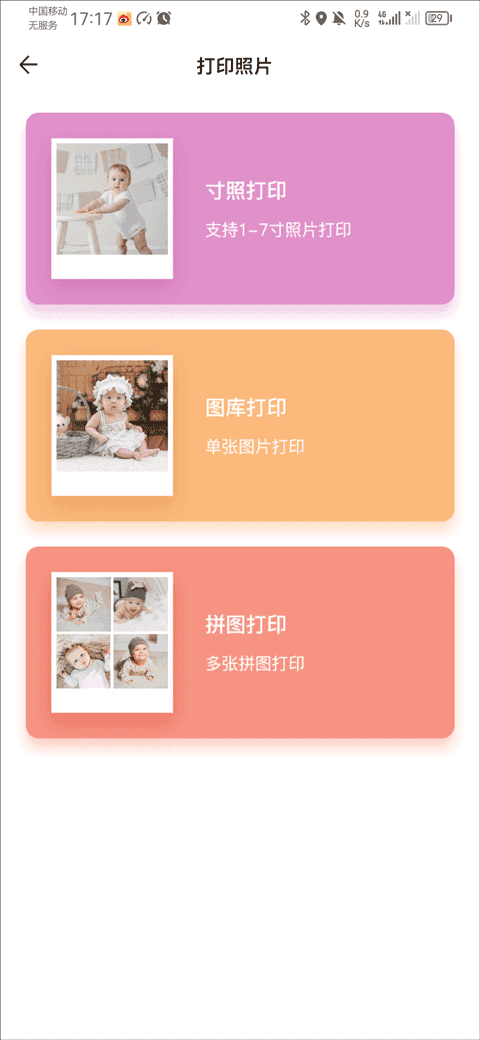 1、在app首页中,选择你要打印的服务,例如打印照片
