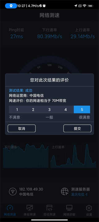 5、等待测试结果出来后,用户可以根据情况进行评价;