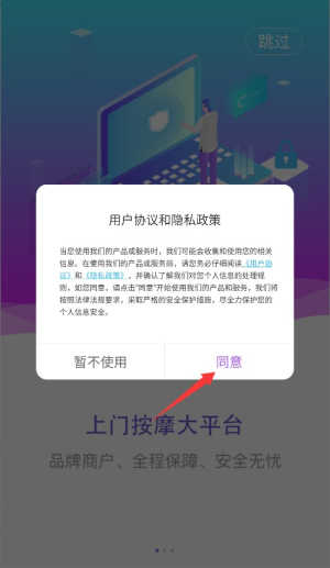 1、首次启动应用时,系统会显示用户协议和隐私政策,阅读后点击同意按钮进入主界面。