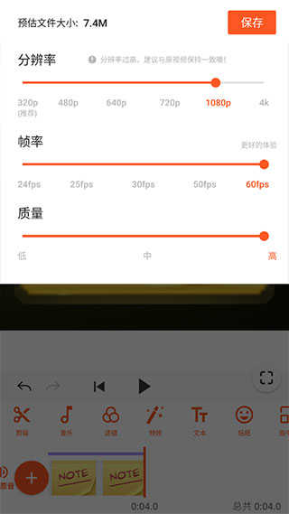 确定之后点击右上角的“保存”选择画质就搞定了。