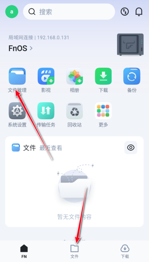 1.进入软件后可以通过文件管理和下方的文件来我们浏览和管理我们NAS上的文件