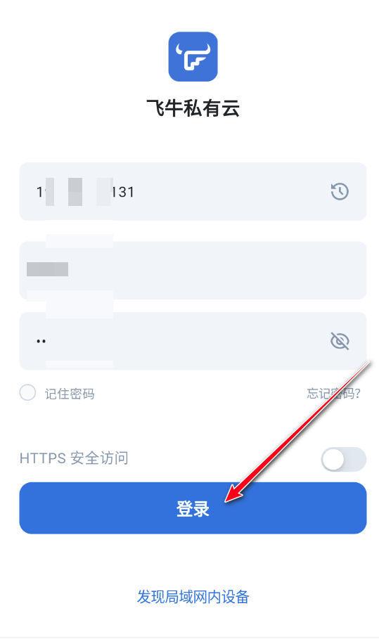 4.手机上登录NAS ip、账号和密码,并点击登录按钮