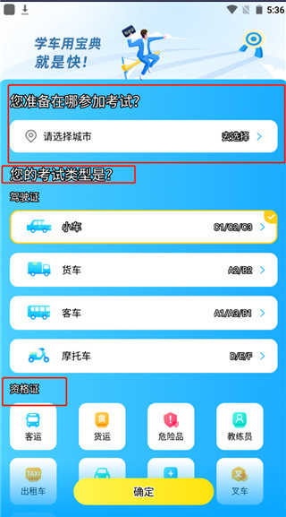 1、打开在本站下载的软件,进入后,选择自己所在的城市、驾驶证类型等;