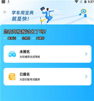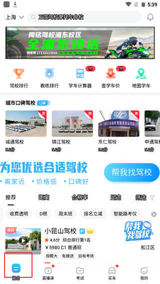 3、进入首页后,如果你选择没报过驾校,它就会为用户推荐附近的驾校;