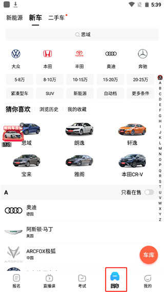 6、点击买车,它会为用户提供海量车型价钱可供用户参考购买;