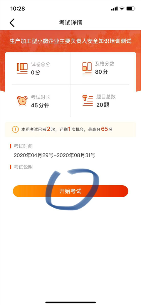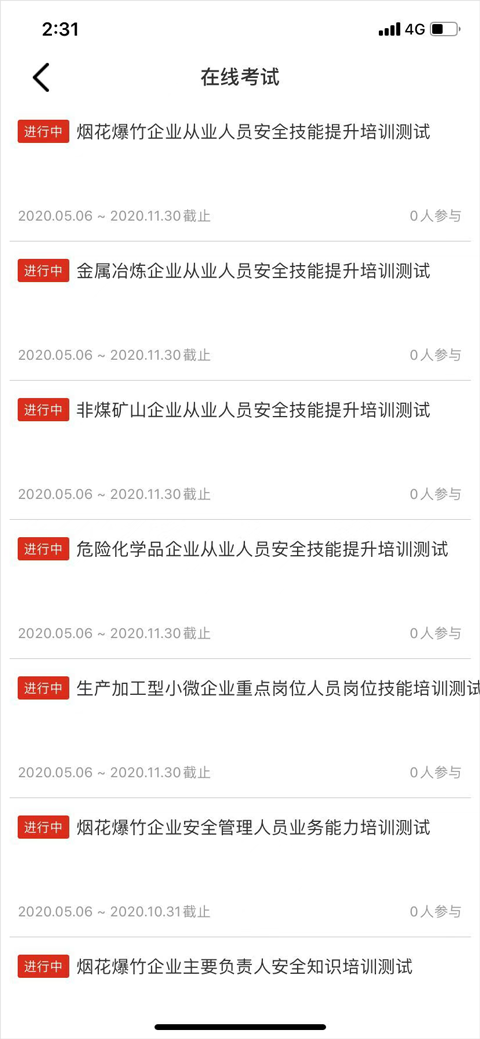 5、在线考试,当学完了安全培训课程即可在这里报名考核考试;