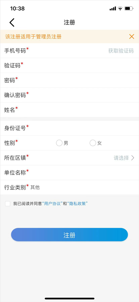 “市县入驻”的注册对象为市县管理员,填写好信息后等待省级管理员审核(行业类别不填、其他同个人注册),信息核实正确后才能开通管理员账号。