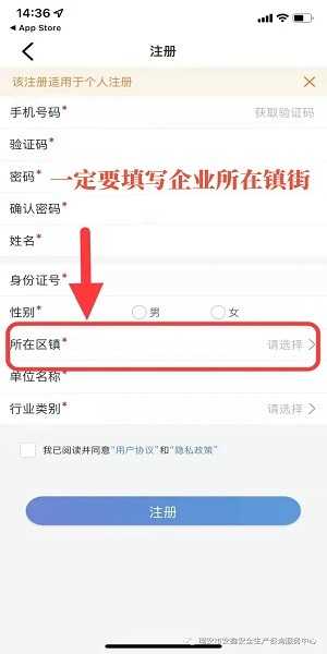 填写相关信息,单位名称不能为空,和营业执照名称保持一致;所在区域一定要填写企业所在镇街;完成注册。