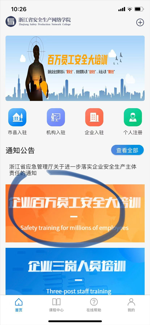 登录后可以选择企业百万员工安全大培训专栏进行课程预览及报名。
