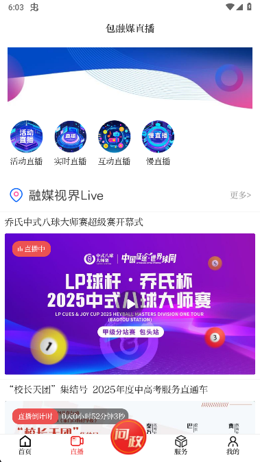 5、还可以通过直播板块查看各种内容