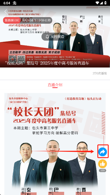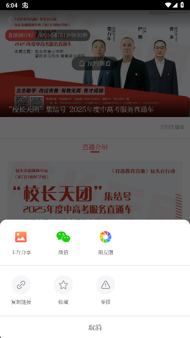 5、点击分享还可以获得直播链接分享至社交平台,邀请好友共同观看
