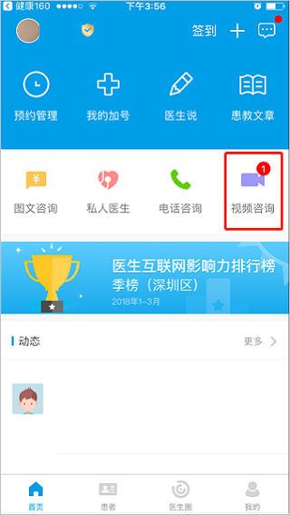 1、打开160医生APP,点击【视频咨询】,进入视频咨询页面。