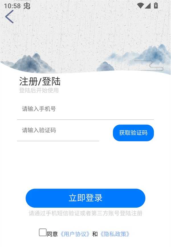 3、输入手机号和验证码即可进行登录。