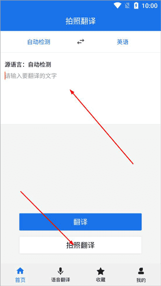1、打开外语拍照翻译app,首页可以手动输入翻译也可拍照翻译;