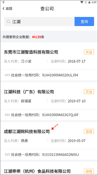 3、这时候页面上就会显示很多的公司,选择自己想要查询的那个公司并进入到公司主页面。