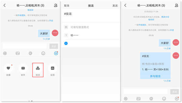 5、群组接龙功能,可以实现群内报名及信息整合。
