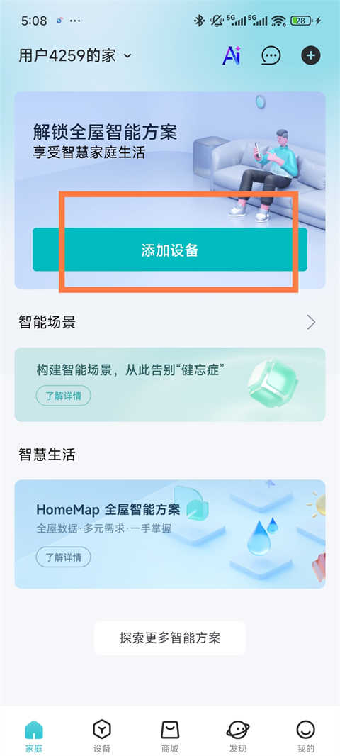 「智能场景」根据生活习惯,设置个性化的智能场景。