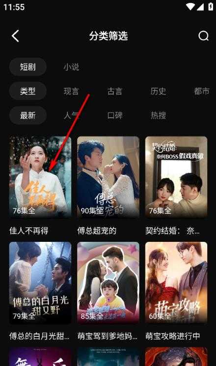 2、进入到首页顶部栏中有很多的短剧资源类型,言情、都市以及悬疑等类型。