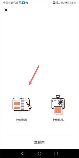 1、用户同样是进入到应用的【我】页面中进行上传,只不过现在是点击【上传食谱】