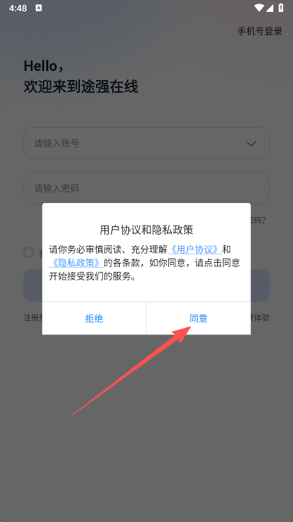 2、阅读同意途强在线app的用户协议
