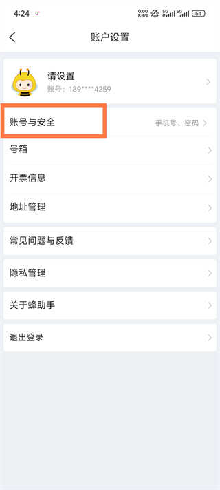 2、点击【账号与安全】