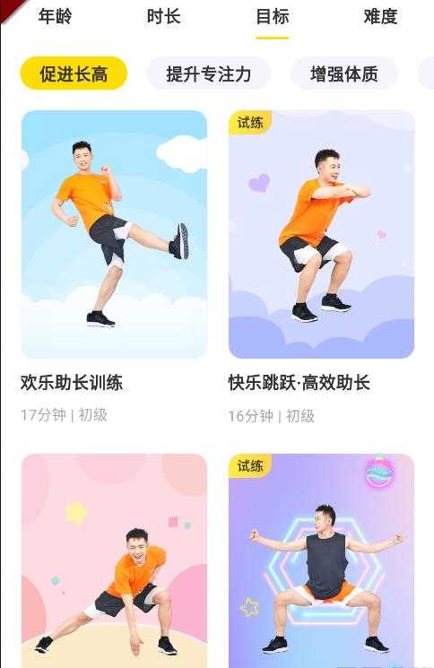 3、在目标界面选择促进长高选项,进入定制运动计划页面。