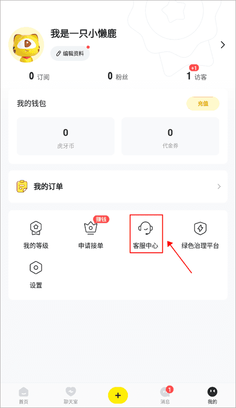 1、在我的界面点击“客服中心”