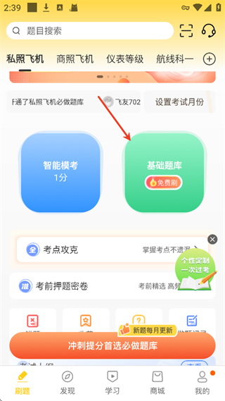 2. 新用户引导升级:注册后可选择飞行、机务等专业,系统自动匹配对应学习科目,完善信息还能领5飞币。