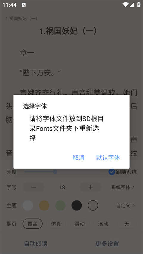 2、支持高度自定义阅读界面,根据个人喜好设置文字大小、背景、亮度、翻页模式等
