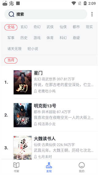 1、打开软件,“发现”界面拥有各个种类的小说,用户可以随意点击一本阅读;