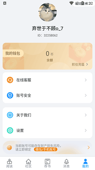 4、在“我的”中也是包括:在线客服、账号安全等。