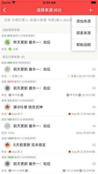 书源并非越多越好,满足你的需求就够了。 除了自定义书源之后,你还可以使用自定义来源