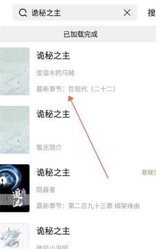 2、在出现的小说列表中点击该小说进入章节目录,点击继续阅读