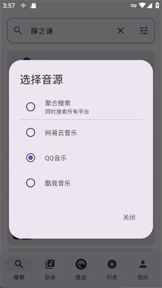 在搜索前可切换音源,支持聚合搜索、网易云音乐、QQ音乐、酷我音乐等多平台音源,轻松搜遍全网资源。