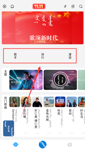 2、首页提供歌手作品展示、热门榜单及个性化音乐推荐等核心内容模块。